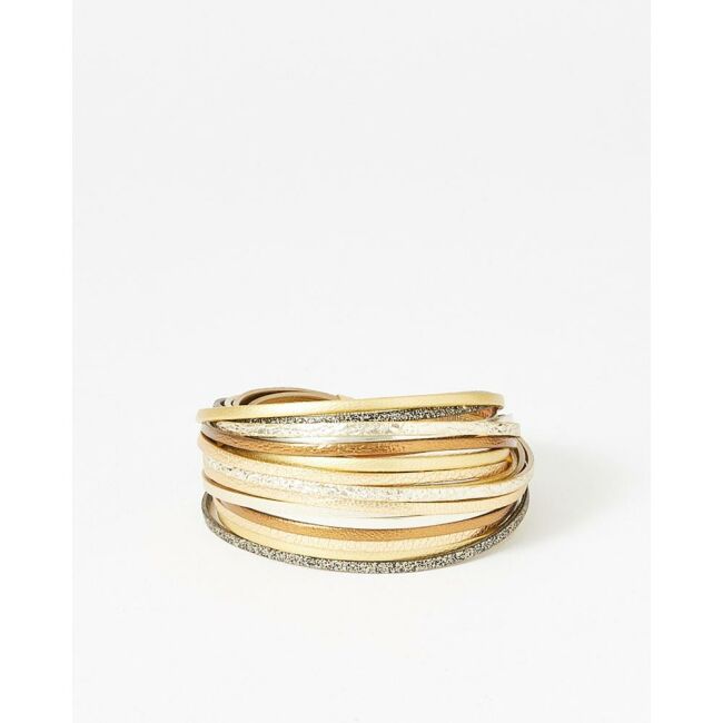 Bracelet FlowersforZoé MAGNUM en acier doré et cuir, T1