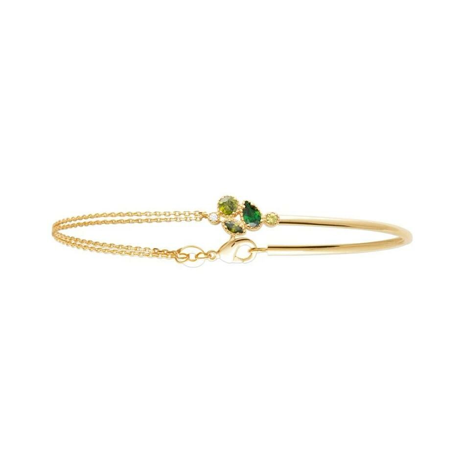 Bracelet en plaqué or, oxyde de zirconium et pierre de couleur