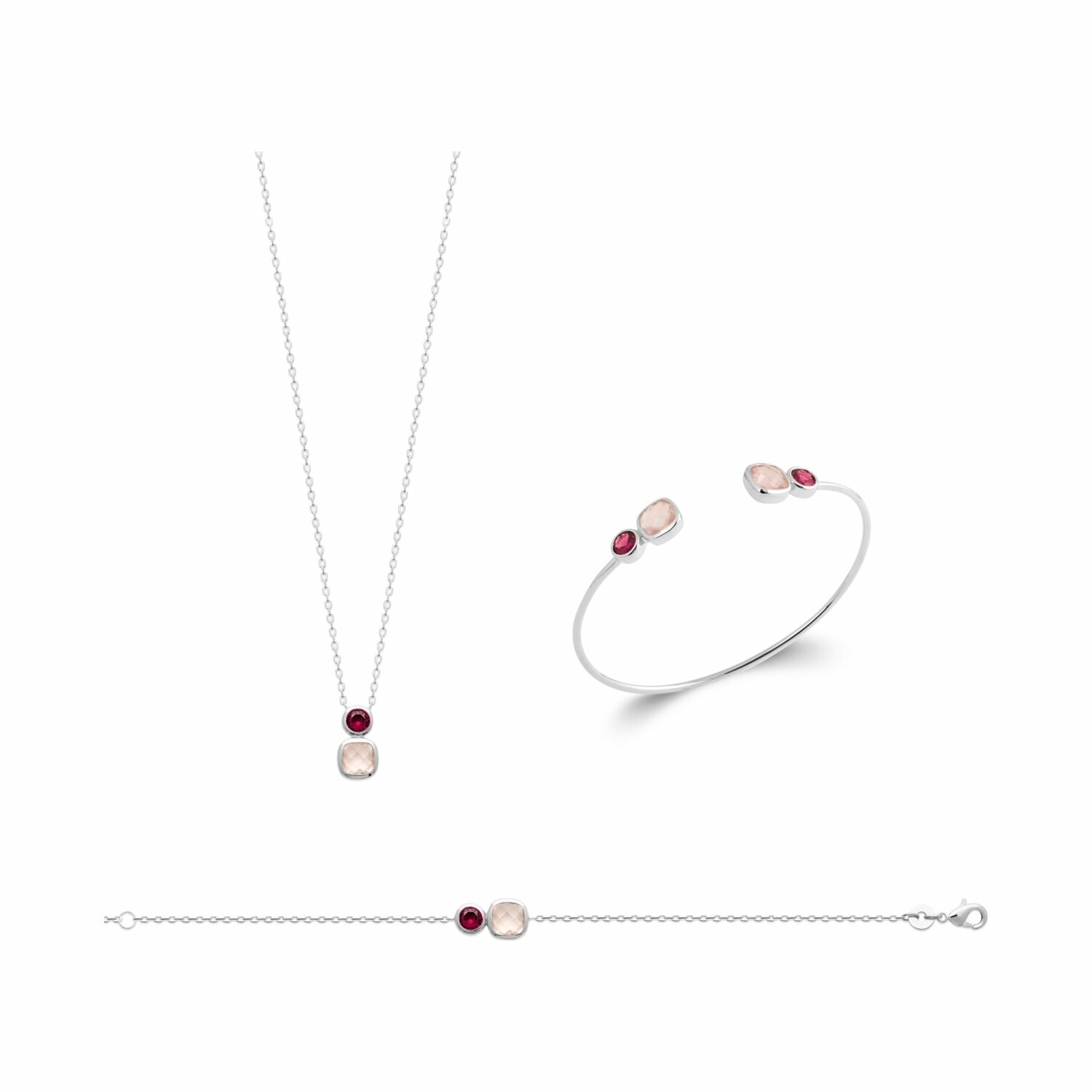 Bracelet jonc en argent rhodié et pierre véritable