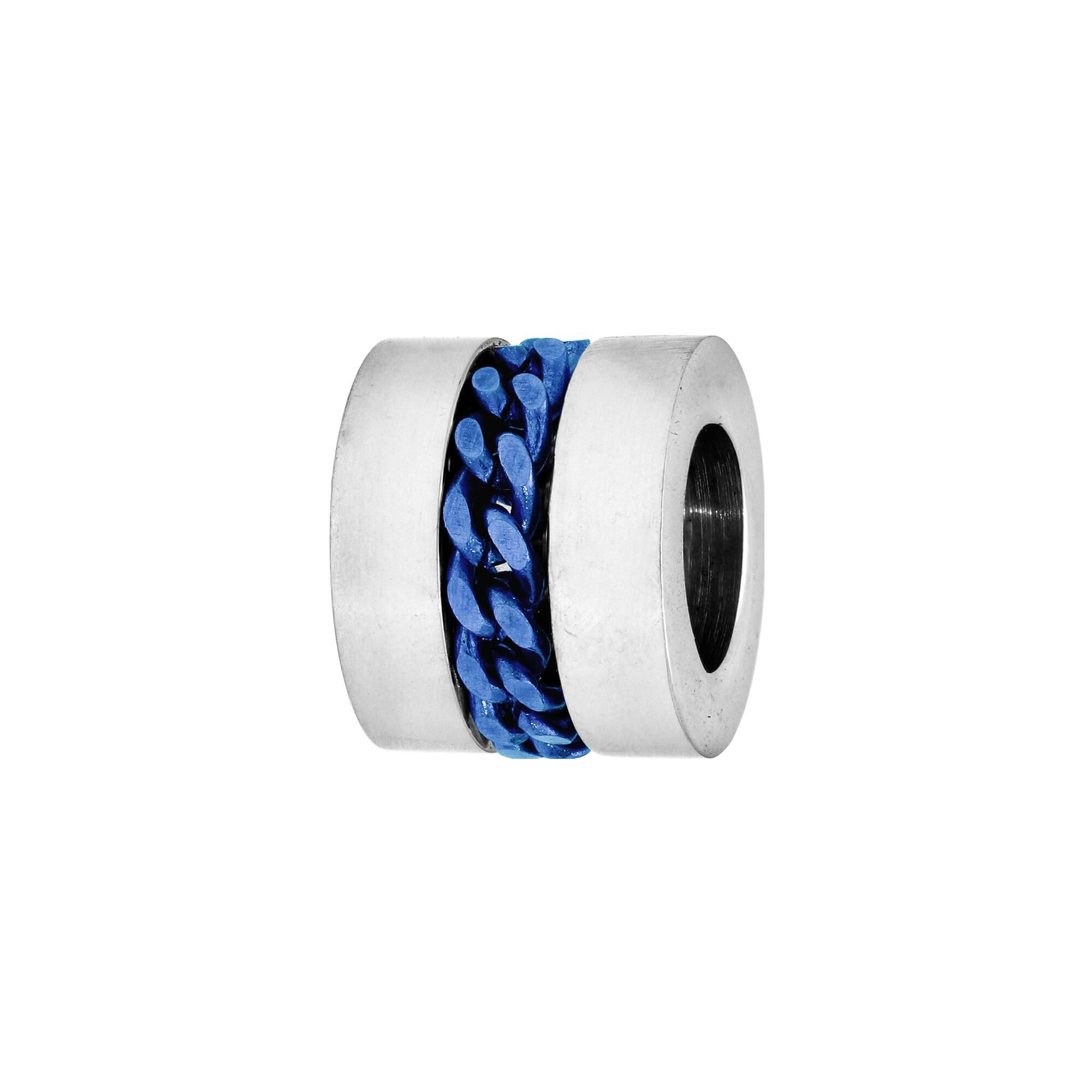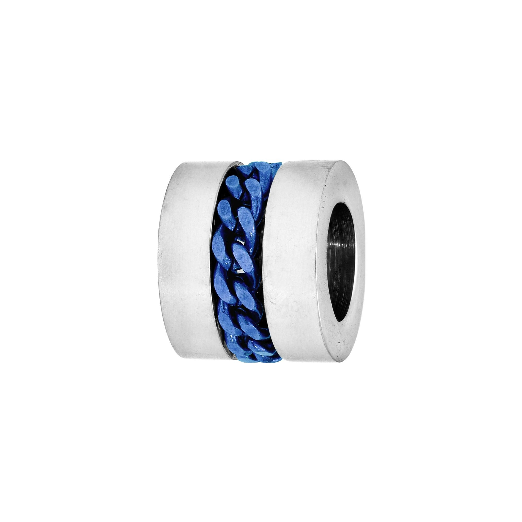 Charms acier medium forme cylindre avec chainette pvd bleu